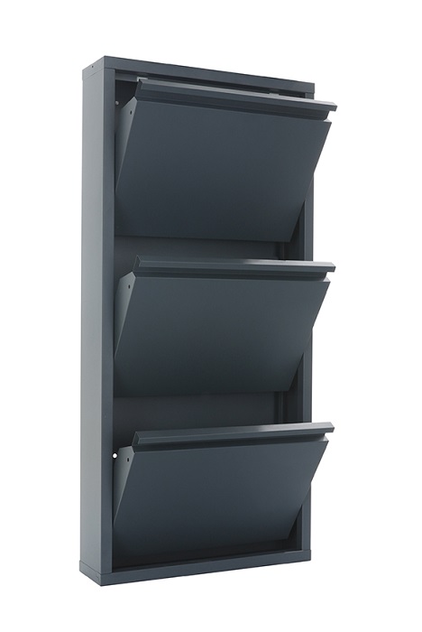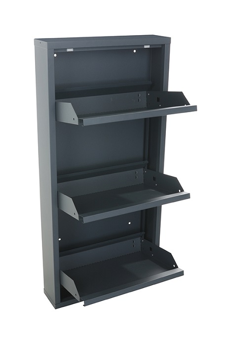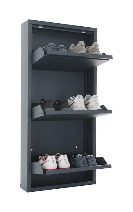 Обувница Практик ОМ-3 предназначена для хранения обуви. Обувница состоит из трех отделений, каждое отделение вмещает 2 пары обуви (до 43 размера). Изготовлена из стали, поставляется в собранном виде. Цвет: графит гладкий. Тип покрытия: порошковое