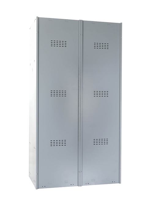 Модульная система локеров Практик ML 21-60 (1500) базовый модуль предназначен для хранения сменной одежды в производственных, спортивных и других помещениях, а также для организации камер хранения. Представляет собой сборно-разборную жесткую конструкцию, усиленную сварной рамой. Собирается в вертикальном положении при помощи зацепов и саморезов. Специальные элементы боковых креплений на боковой стенке позволяет наращивать ряд модулей любой длины. Все модули серии ML совместимы между собой. Базовый модуль МL 21-60 (1500) оснащен улучшенной вентиляцией на дверях и задней стенке. Каждая секция комплектуется полкой для головного убора, перекладиной для вешалок и крючками. Двери закрываются ключевым замком Практик (2000 комбинаций). Открывания дверей правостороннее или левостороннее. Цвет: серый-полуматовый (Ral 7038). Возможен окрас в другие цвета из палитры производителя. Дополнительная опция: замок PL (вместо ключевого замка устанавливается бесключевой замок Euro-locks A129 с устройством под навесной замок). Поставляется в разобранном виде
